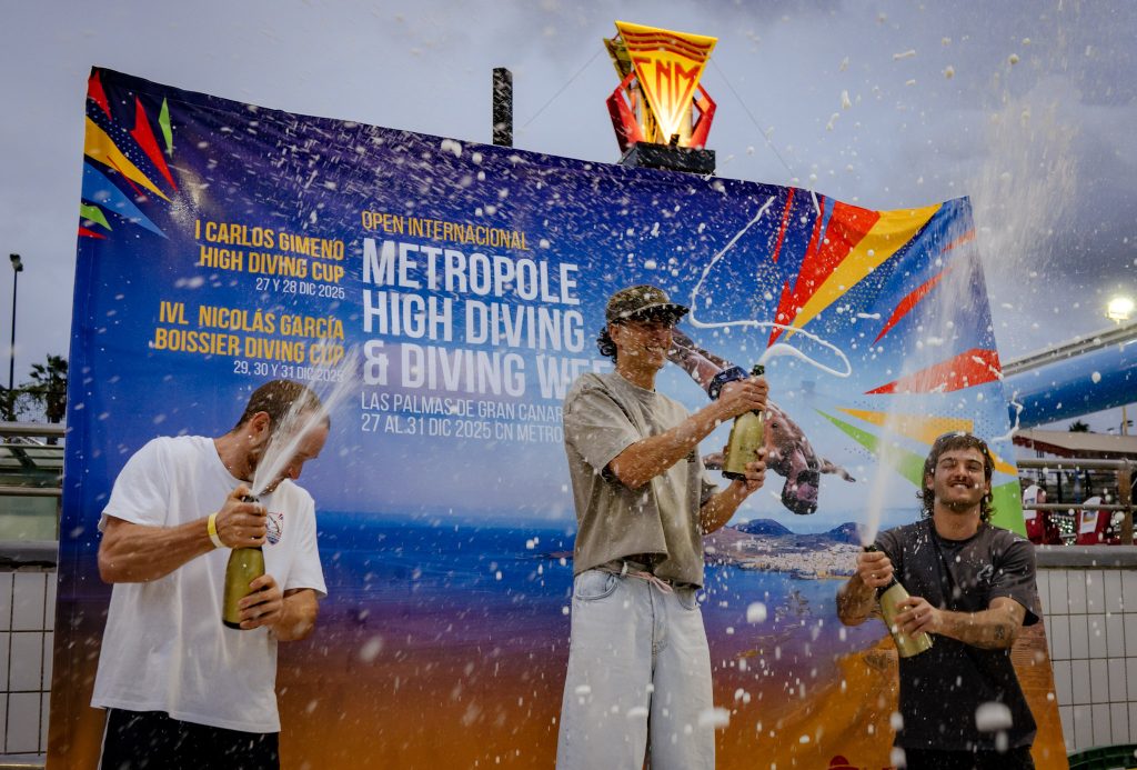 El domingo 28 de diciembre, el Club Natación Metropole acogió la I Carlos Gimeno High Diving Cup, una competición profesional de high diving con atletas internacionales, que ejecutaron complejas figuras desde plataformas de 20 metros de altura, combinando precisión, técnica y control corporal.