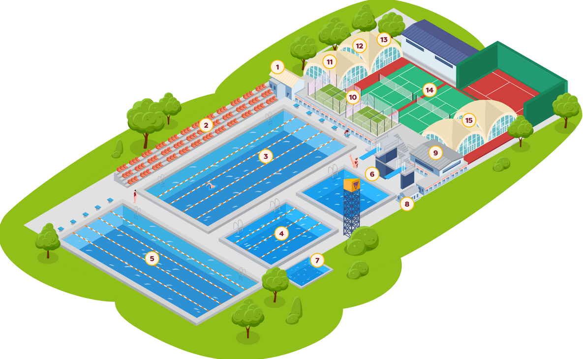 Y a partir de esa fecha las instalaciones continuaron su desarrollo, hasta llegar al estado actual, con dos piscinas reglamentarias de 50 metros, una de 25 metros y Torre de Saltos, además de otras instalaciones complementarias como pistas de tenis, pádel, gimnasio, sala de judo entre otras, lo que ha permitido al club ser sede de múltiples competiciones oficiales a nivel local, nacional e internacional.